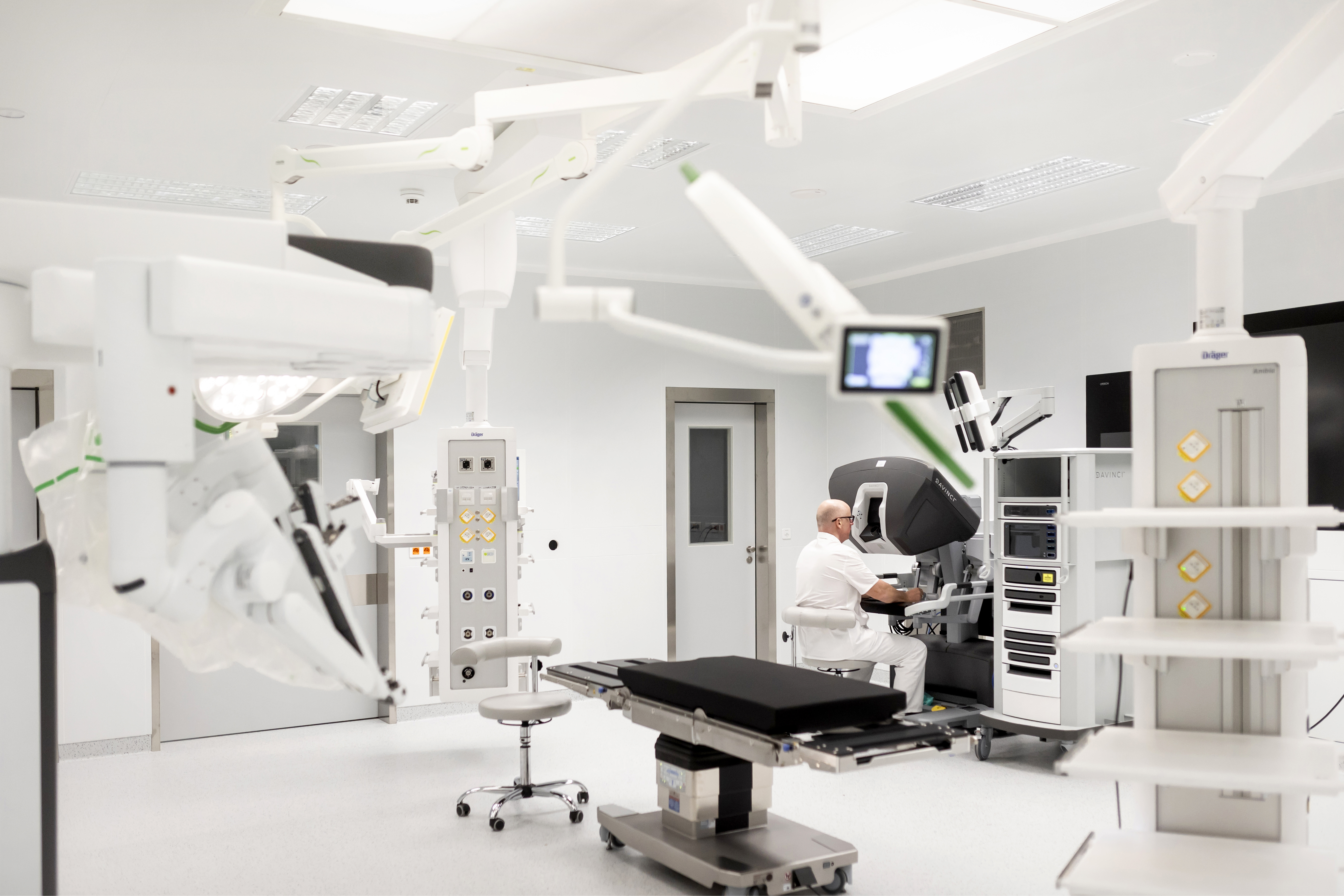 Sál pro robotickou chirurgii využívají mimo všeobecných chirurgů také týmy onkogynekologie a urologie.