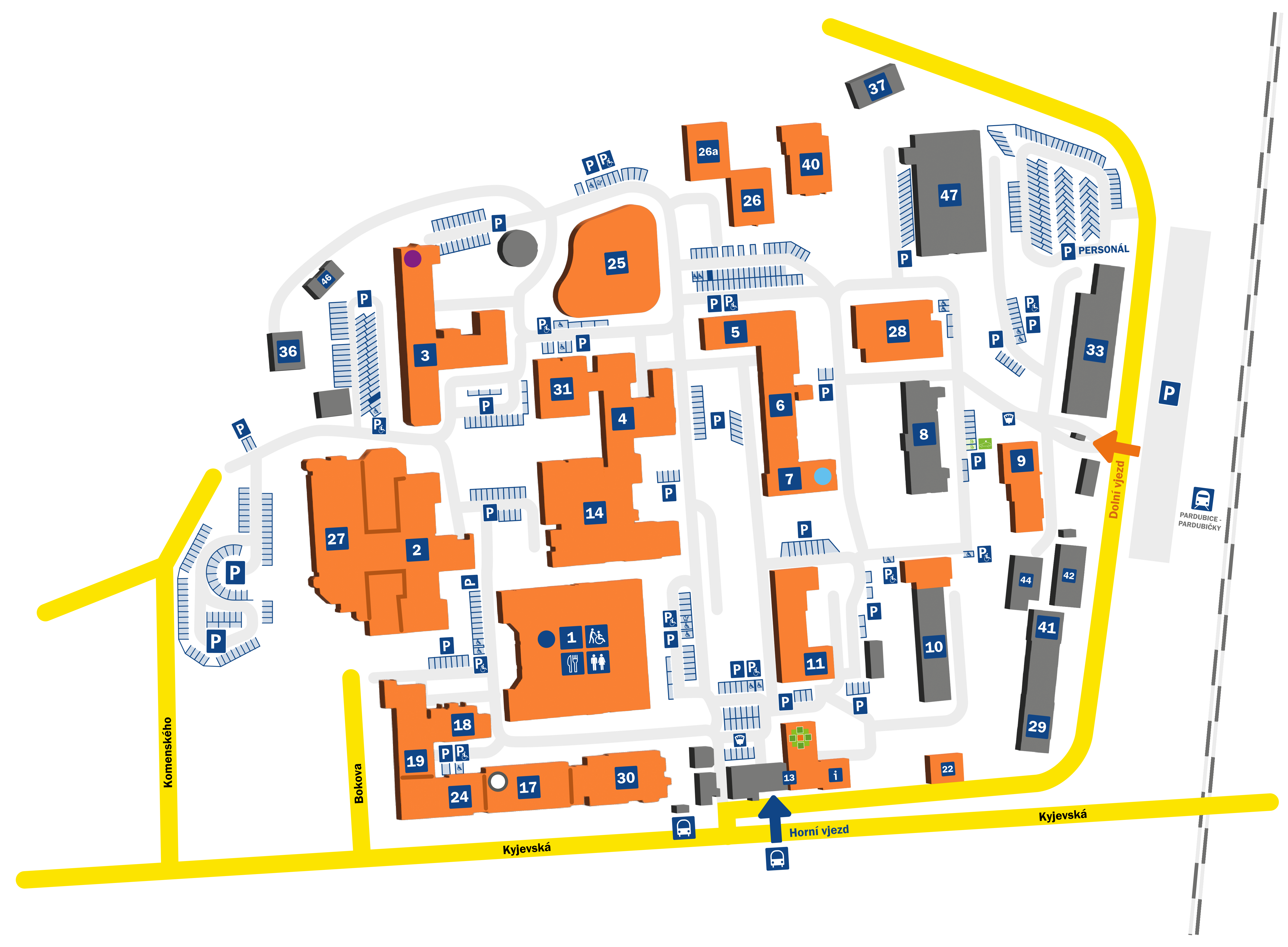 V areálech Nemocnice Pardubického kraje je možné parkovat pouze na místech tomu vyhrazených. Při parkování a jízdě v areálech platí pravidla silničního provozu včetně svislého a vodorovného dopravního značení. Dávejte především pozor na přednost vozidel přijíždějících zprava (pokud není stanoveno jinak).