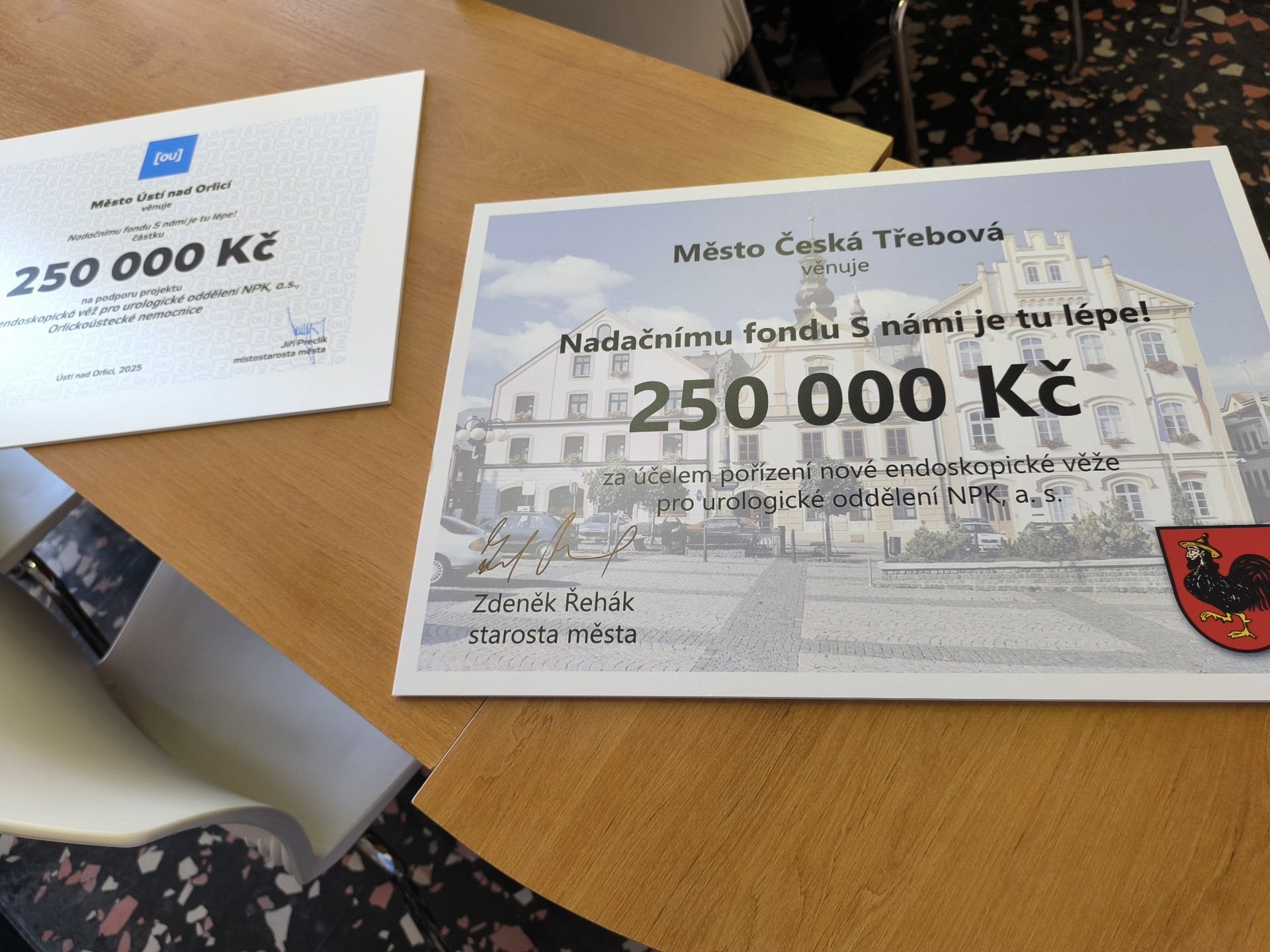 Celá částka poslouží k pořízení nové urologické endoskopické věže do Orlickoústecké nemocnice. „Rád bych poděkoval občanům a zástupcům měst, že přispíváte do fondu na rozvoj Orlickoústecké nemocnice. Jsou to prostředky, které můžete věnovat na obecní projekty, ale přesto dáváte přednost nemocnici. Za to vám patří náš obdiv a dík,“ řekl Vratislav Dědek, oblastní ředitel pro zdravotní služby Litomyšlské, Svitavské a Orlickoústecké nemocnice.