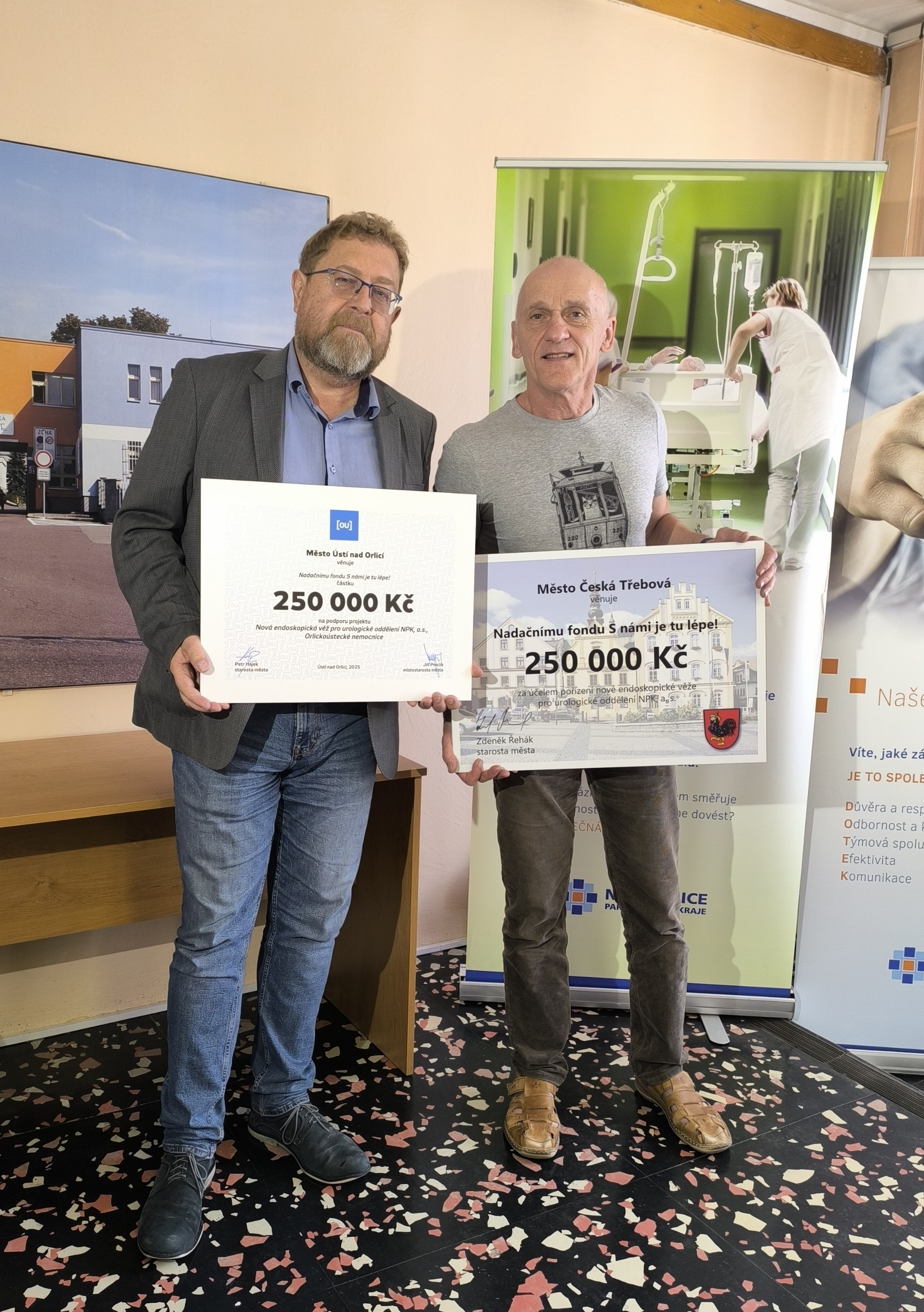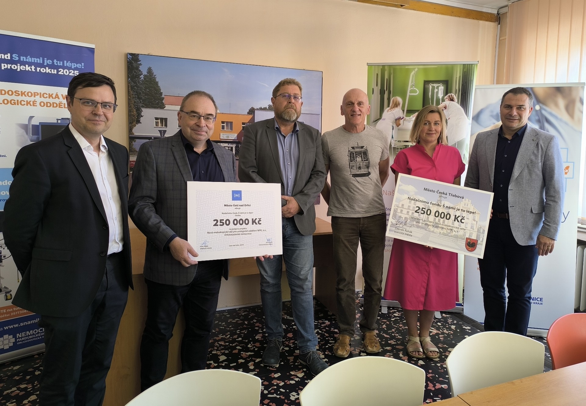 Na fotografii zleva: Jiří Preclík (místostarosta Ústí nad Orlicí), Petr Hájek (starosta Ústí nad Orlicí), Karel Kohoutek (ředitel léčebné péče Orlickoústecké nemocnice), Kvido Štěpánek (předseda správní rady Nadačního fondu S námi je tu lépe!), Petra Válková (1. místostarostka České Třebové), Zdeněk Řehák (starosta České Třebové)