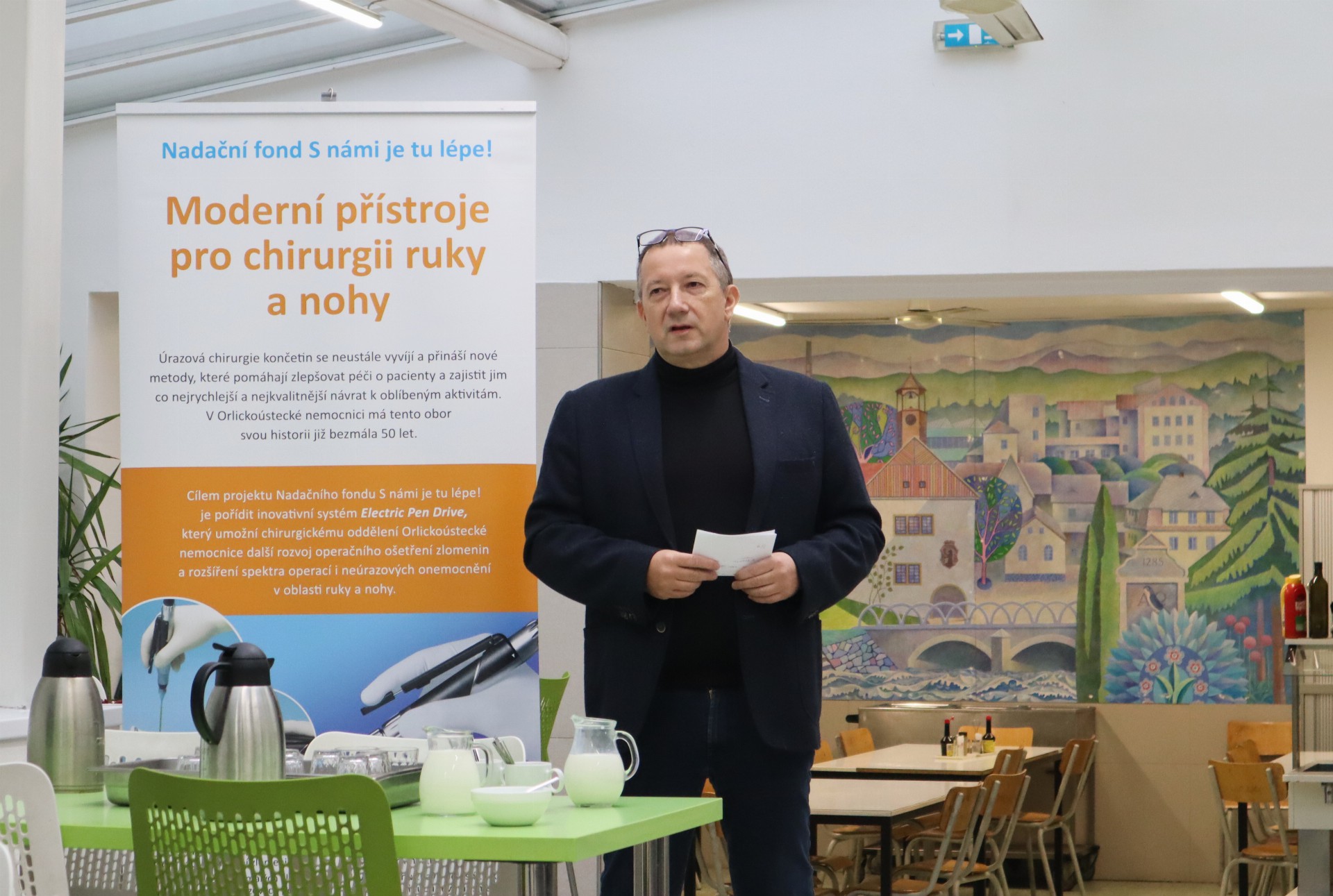 Letošním projektem, na nějž se podařilo vybrat prostředky a který bude díky příznivcům Nadačního fondu realizován, je pořízení moderního přístroje pro operační ošetření zlomenin ruky a nohy. „Těm, kteří přispěli k tomu, abychom mohli modernizovat naše operační možnosti, patří obrovský dík,“ řekl na setkání primář chirurgického oddělení Orlickoústecké nemocnice Aleš Siatka. „Systém, který díky Nadačnímu fondu budeme moci pořídit, je unikátní v tom, že umožňuje přesnější vrtání s možností oscilace vrtáku, která zabrání namotání přilehlé jemné struktury, například nervu na prstech, na vrták, a tak jejímu poranění. Péče tak bude přesnější a šetrnější, což povede k lepším výsledkům hojení úrazů,“ dodal primář Siatka.