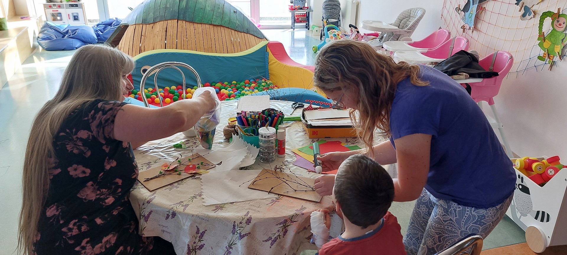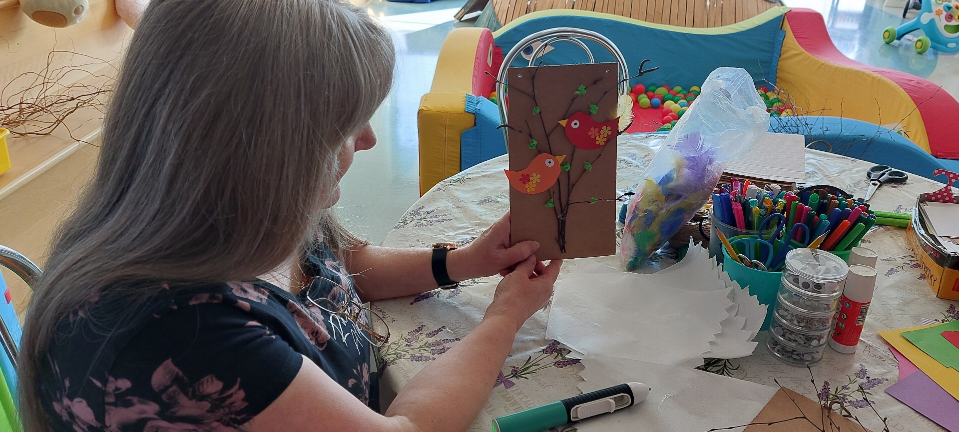 Společně jsme přivítali jaro výtvarnými dílnami na téma "Jarní tvoření" a „Velikonoční tvoření - Zajíček" s p. L. Stejskalovou.