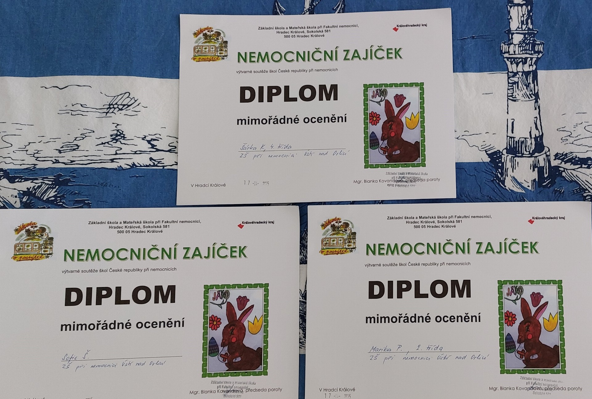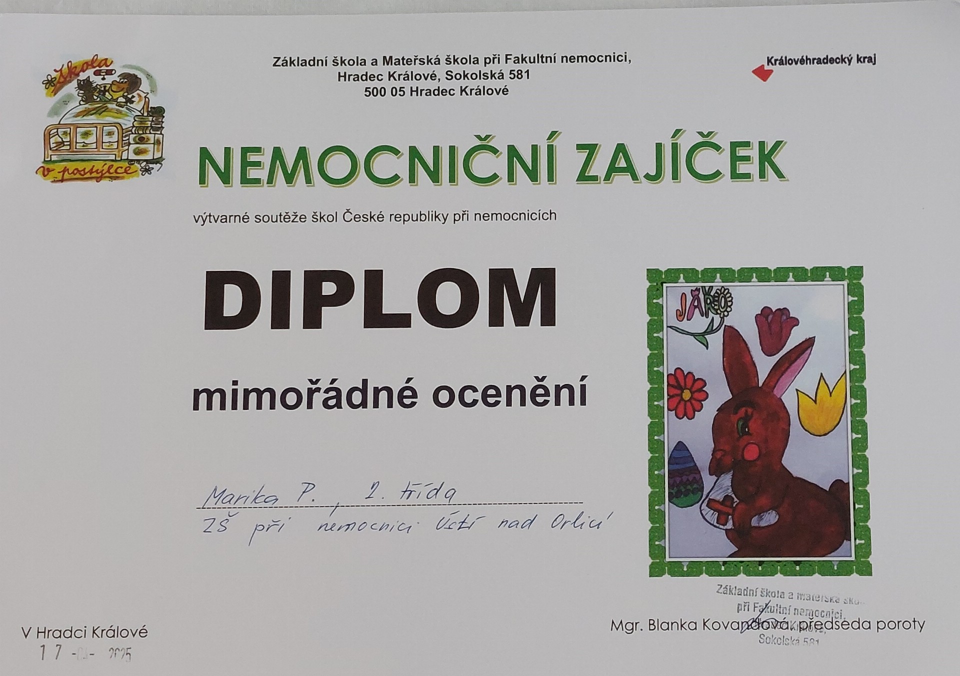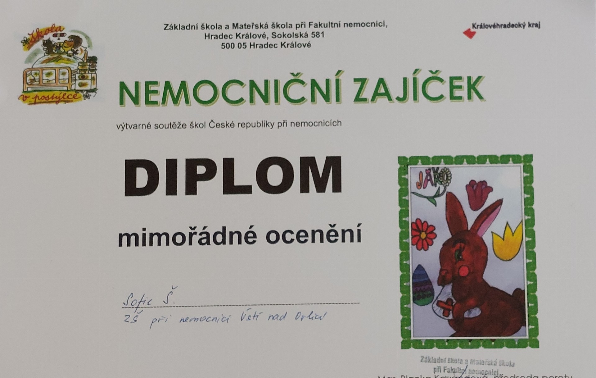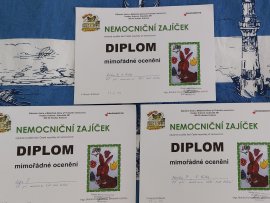 Gratulujeme také za mimořádné ocenění prací v 8. ročníku výtvarné soutěže "Nemocniční zajíček 2025": Sofince a Marice.