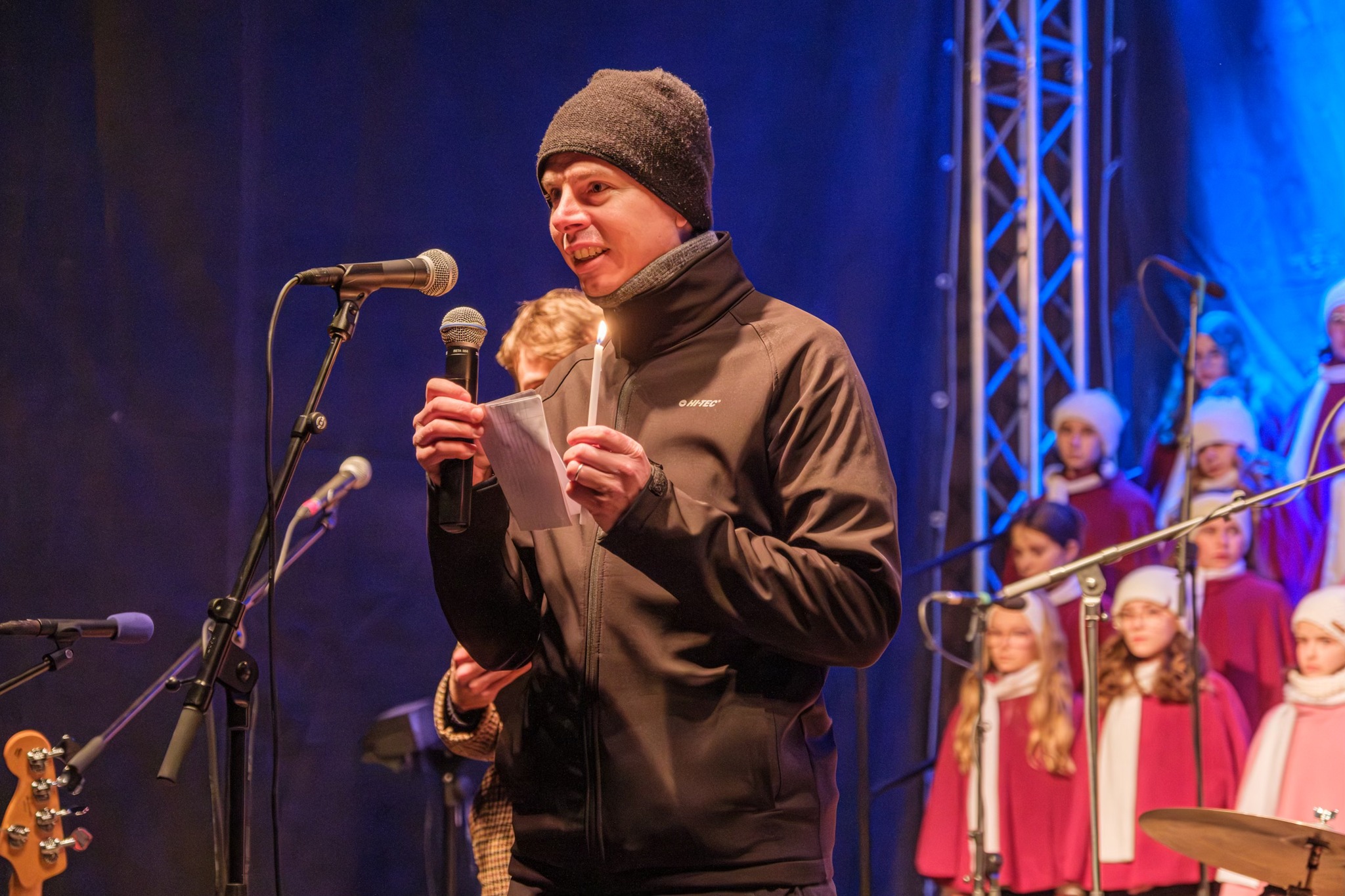 Jiří Fiala při rozsvěcení vánočního stromu v Litomyšli.