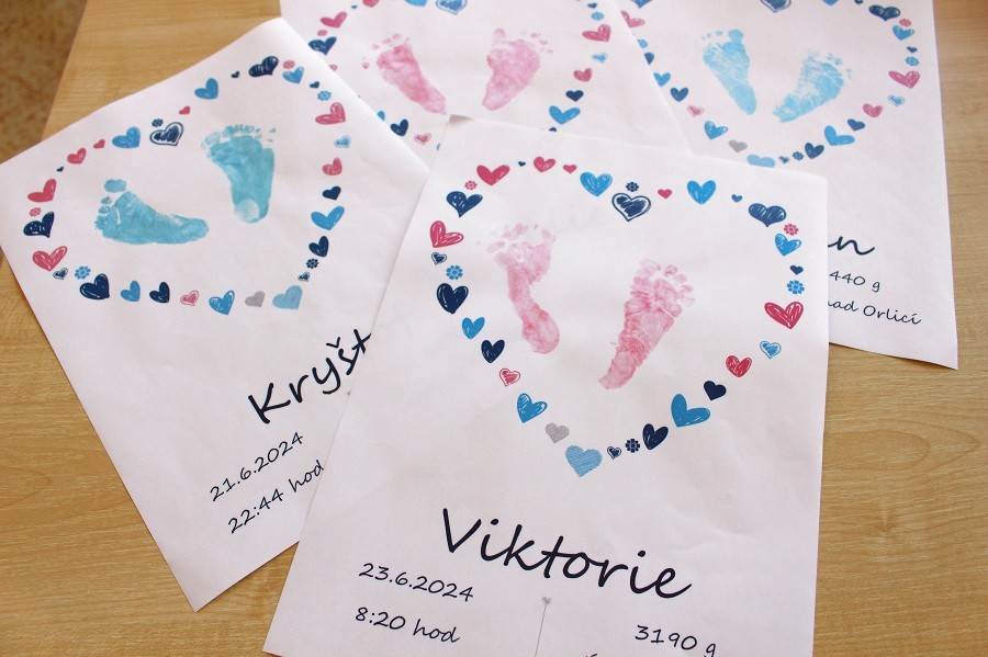 Informační tiskoviny pro maminky ale nejsou jedinou novinkou, kterou v porodnici mají. „Začali jsme vystavovat pamětní listy pro miminka, které obsahují nejen údaje o čase narození a váze miminka, ale také otisky nožiček. Chtěli jsme maminkám a miminkům věnovat něco na památku, aby si později mohly zavzpomínat a porovnávat, jak bylo děťátko malinké v prvních dnech života,“ uzavírá seznam novinek vedoucí sestra novorozeneckého oddělení Iveta Frajdlová.