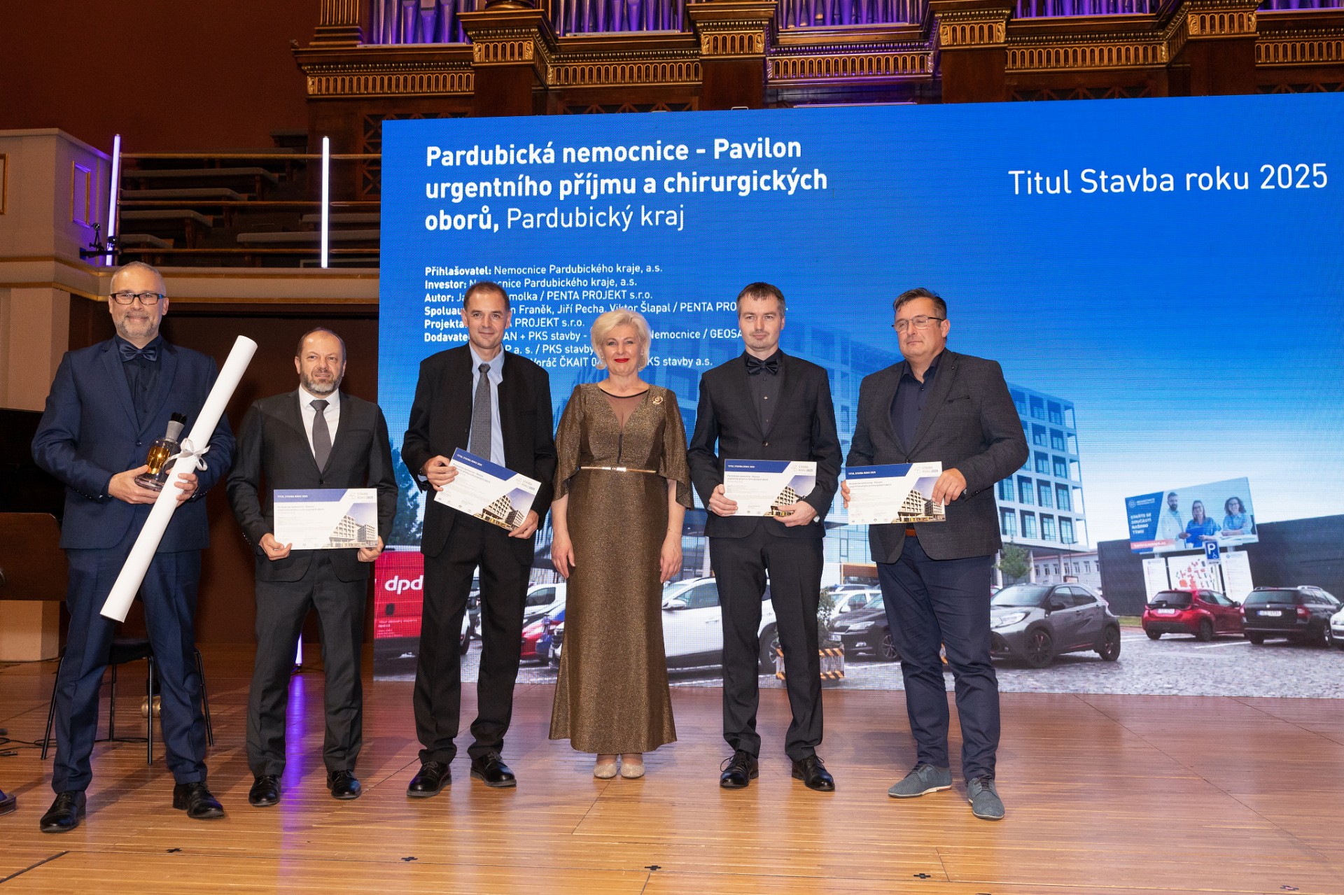 Nový pavilon urgentního příjmu a chirurgických oborů Pardubické nemocnice byl oceněn titulem Stavba roku 2025 hned ve dvou soutěžích – v krajské i celostátní kategorii. V rámci Stavby roku Pardubického kraje byl oceněn jako významný veřejný projekt, který přispívá ke zlepšení infrastruktury zdravotní péče v regionu. V celostátní soutěži, kde se letos utkalo 130 staveb, získal titul za realizaci stavby, která zásadně proměnila provozní strukturu nemocničního areálu.