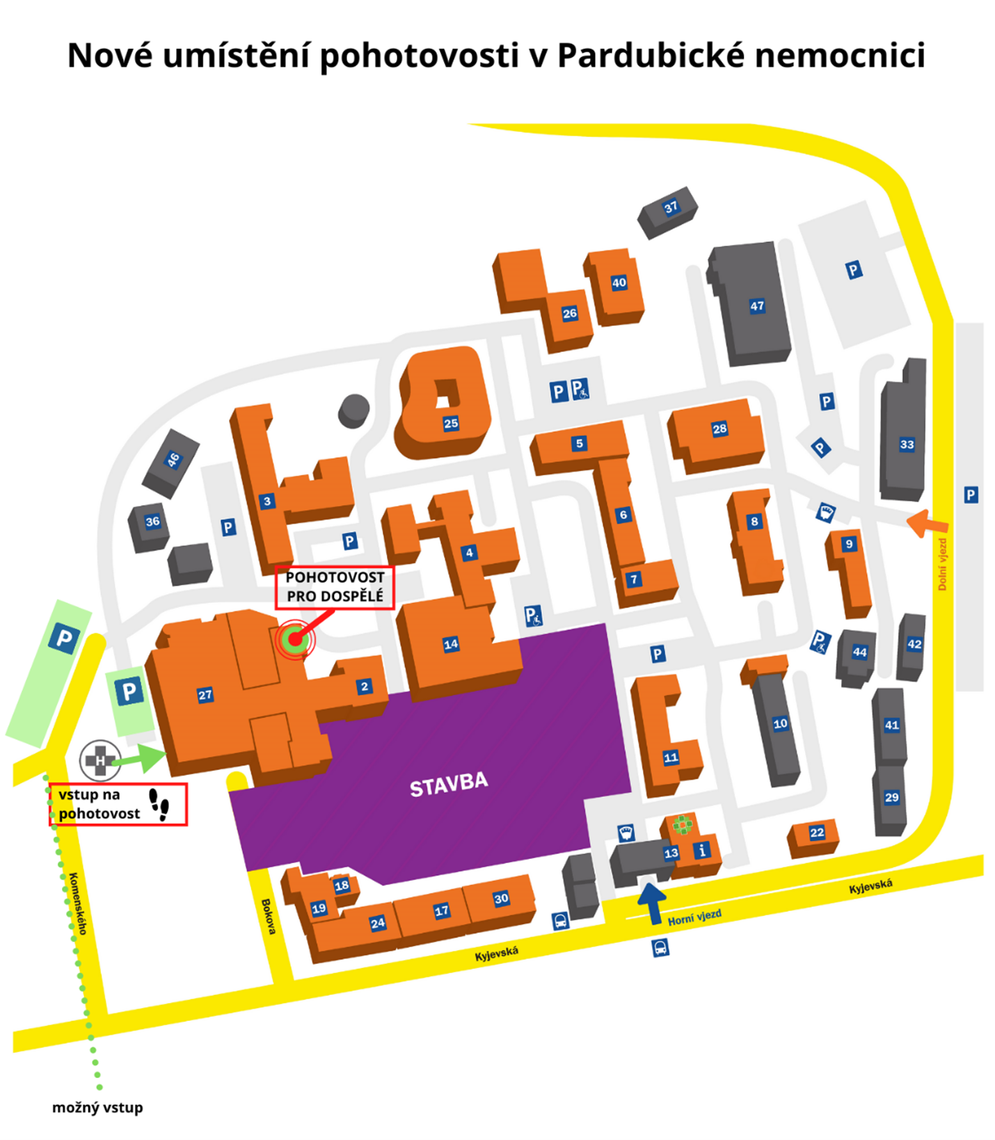 Lékařská pohotovostní služba pro dospělé fungující v areálu Pardubické nemocnice se od pondělí 6. září v rámci nemocničního areálu přesouvá, a to z budovy č. 8 do budovy č. 2 do prostor neurochirurgické ambulance.