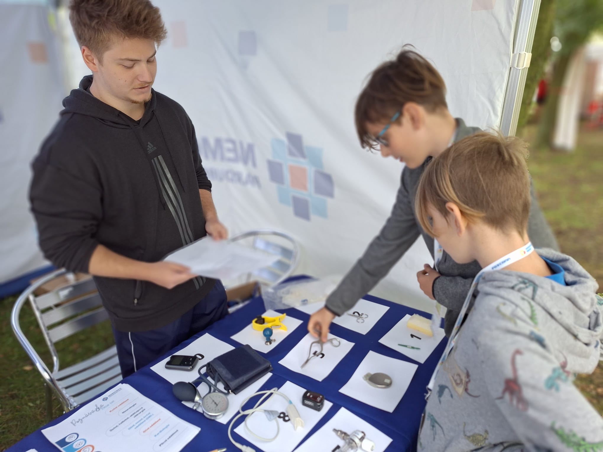 U stánku pomáhá i brigádník Jakub: „Zájem o kvíz i Poznávačku je velký, u kvízu si děti i dospělí nejsou jistí průtokoměrem množství O2 a defibrilátorem, ale většinou na všechno s mírnou nápovědou přijdou.“
