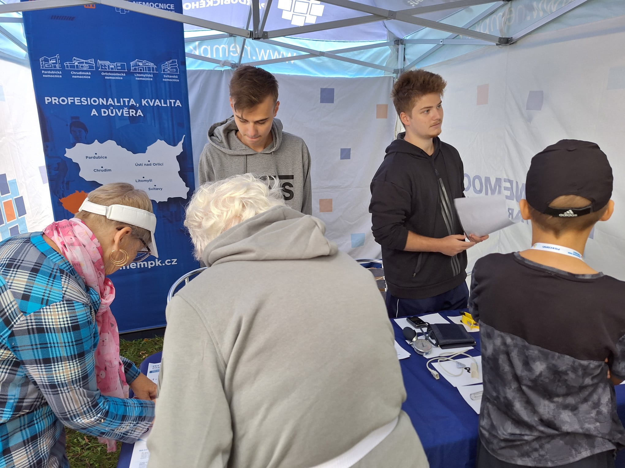 Hlavně dětem je určená Poznávačka. Mají za úkol přiřadit k jednotlivým částem a orgánům těla oddělení, kde je léčí. Školák Šimon to zvládl s mírnou pomocí tatínka na jedničku. Úspěšné byly i dvě seniorky. Jedna z nich, paní Lída Zvěřinová, dělá i ve svých 84 letech ve Sportovním parku dobrovolnici, ale ve volné chvíli si nenechala stánek Nemocnice Pardubického kraje ujít: „Je to dobrá věc, aby děti věděly, na které oddělení zajít, když je třeba bolí ucho nebo mají vyrážku. Za mě je to perfektní a samotnou mě to bavilo.“