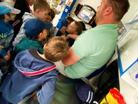 17 školáků z 1.B si nejdřív prohlédlo auto zdravotnické záchranné služby. „O to měli opravdu velký zájem. Podívali se dovnitř sanitky a mohli si i vyzkoušet, jaké to je být v pozici pacienta na nosítkách. Záchranáři pomalu nestačili odpovídat na jejich dotazy,“ řekla manažerka kvality Orlickoústecké nemocnice Lucie Valová, která děti provázela.