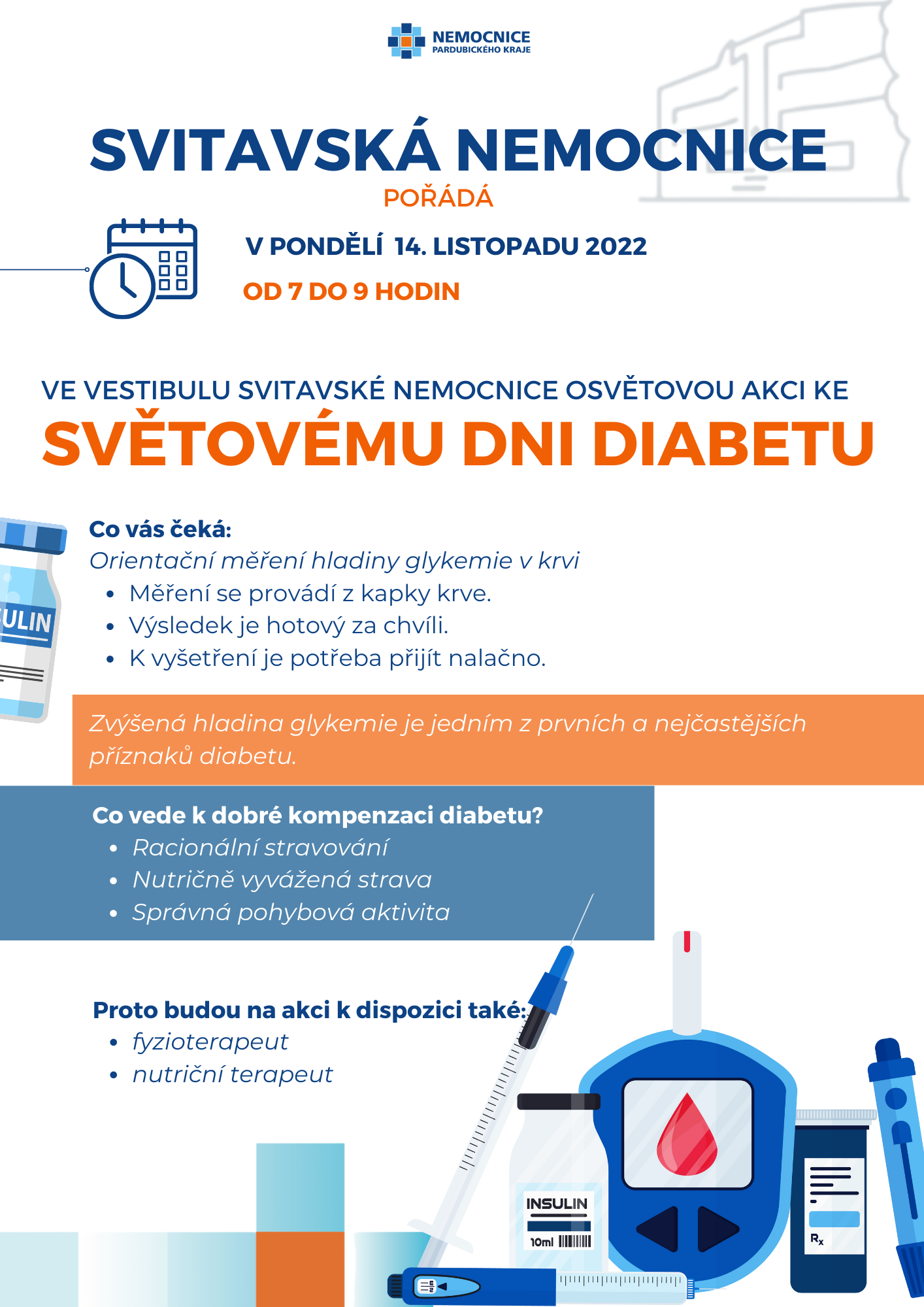 Svitavská nemocnice si v pondělí 14. listopadu 2022 od 7 do 9 hodin připomene Světový den diabetu.