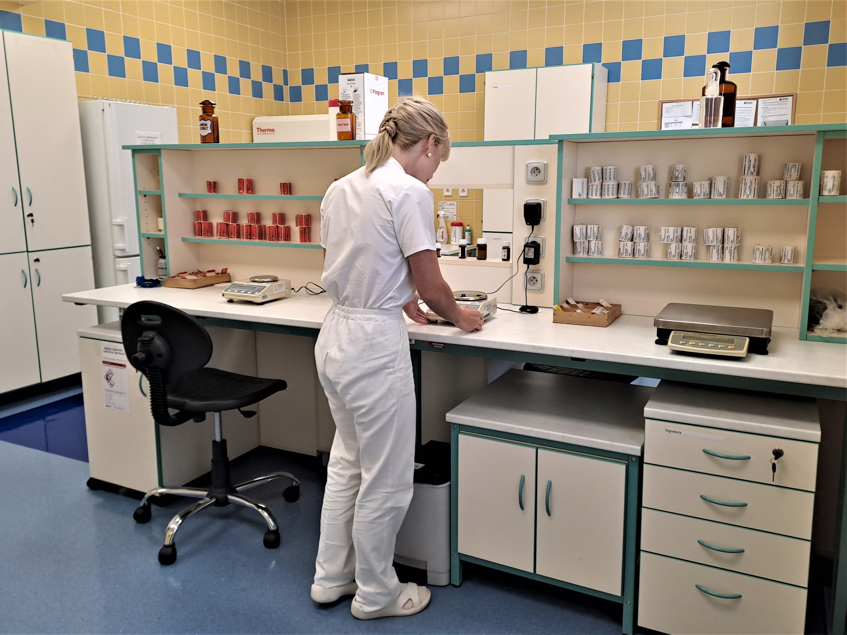 Jedním z klíčových úkolů ústavní lékárny je příprava léků podle specifických požadavků lékařů. „Připravujeme léčiva, která nejde běžně objednat, nejsou v klasické distribuci, ale musí být upravená podle potřeb pacienta,“ vysvětluje vedoucí Ústavní lékárny Pardubické nemocnice Kateřina Hradecká a uvádí příklad třeba pacientů s vysokou hmotností či malých dětí, pro které v laboratoři připravují léčiva buď přímo z dané suroviny, nebo jako součást použijí hotové léky.