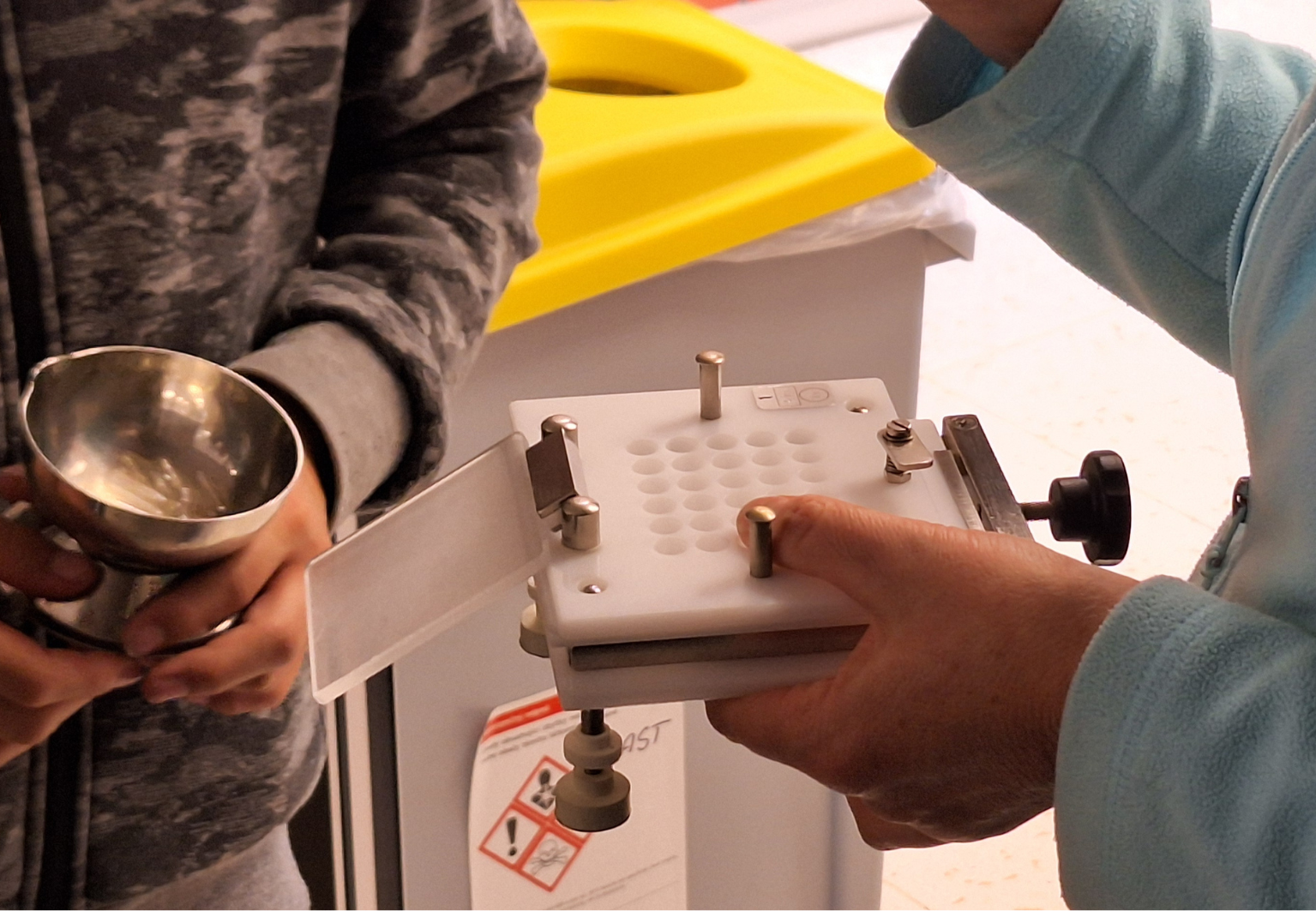Laboratoř pro přípravu léčiv má vyšší úroveň čistoty a danou teplotu. To znamená, že tam nemůže přijít každý a nelze také kvůli prachu a teplu otevírat okna, proto v místnosti stále běží klimatizace. Jedním z nejdůležitějších přístrojů pro přípravu léků jsou digitální váhy, v laboratoři je jich hned několik: „Liší se mírou přesnosti, je to od půl gramu po miligramy,“